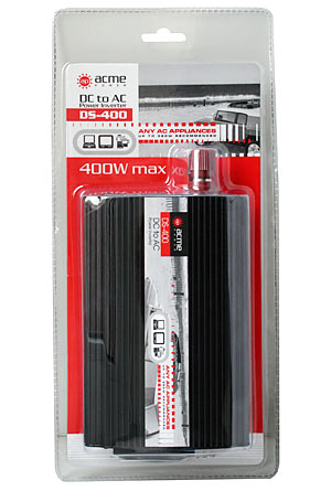 Автомобильный ивертор AcmePower AP-DS400 - это возможность путешествовать с комфортом. Ведь благодаря ему в вашей машине появится классическая розетка, а значит, вы сможете пользоваться привычными и такими удобными электроприборами. AcmePower AP-DS400 преобразует 12В постоянного тока в 220В переменного. Подключается напрямую к аккумулятору.