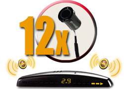 4 датчика парковки устанавливаются в передний бампер и 4 — в задний. Все данные, полученные от них, отображаются на LED-индикаторе. Если впереди обнаружено препятствие, система Вас известит. Вы убережете свой автомобиль от повреждений, сделав необходимый маневр. Парктроник идеально подходит для высоких моделей машин, у которых ограничен обзор.