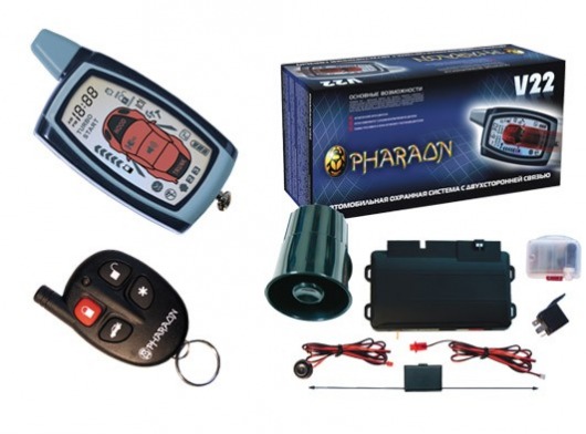 Автосигнализация PHARAON V22 - охранная система с двусторонней связью и автоматическим запуском двигателя. Процессорный блок можно установить в самых потаенных местах автомобиля благодаря компактному размеру.