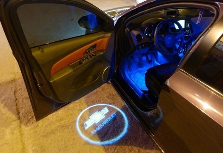 Подсветка с логотипом Chevrolet - новый нестандартный вариант тюнинга! В дверь авто устанавливается миниатюрный проектор, который выводит на асфальт четкое цветное изображение логотипа Chevrolet. Картинка появляется, когда вы открываете дверь, и исчезает, когда дверь закрывается. Выглядит это очень стильно и необычно.