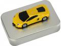 Флешка на 16 Гб. Выполнена в виде автомобиля Lamborghini Murcielago. Цвет: желтый. Упакована в подарочную коробочку.