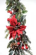 Новогодняя гирлянда с красными пуансеттиями создает замечательное рождественское настроение. Елочная гирлянда длиной 1,52 м украшена ярко-красными пуансеттиями ("рождественскими звездами"), цветочками, ягодами и шишками. Вы можете использовать эту елочную гирлянду для праздничного оформления офиса или дома.