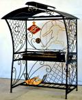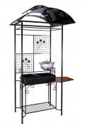 Дополнительно в комплекте: вертел, чугунный казан на 8 л, решетка для гриля, подставка под сковороду, нажигатель для дров, дровница, колчан для шампуров, 2 деревянных разделочных столика, полка для посуды