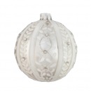 Шар на елку серебряно-белый со стразами сделан из стекла. В набор входит 12 елочных шаров, каждый по 8 см в диаметре.