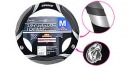 Оплетка на руль AP-130 изготовлена из имитации натуральной кожи с прострочкой и ребристыми вставками. Цвет: черный. Размер: М. Подходит на все типы рулевого колеса.